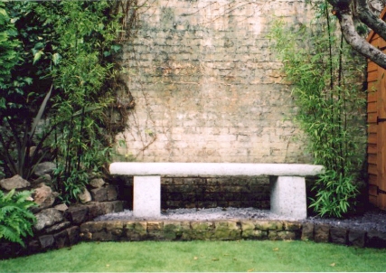 Before, well almost! The garden has been cleared, the shed base is in place and the stone bench installed
