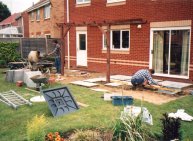 Our clients came to us with a good idea of what they wanted, a new patio with an integral water feature and a pergola.